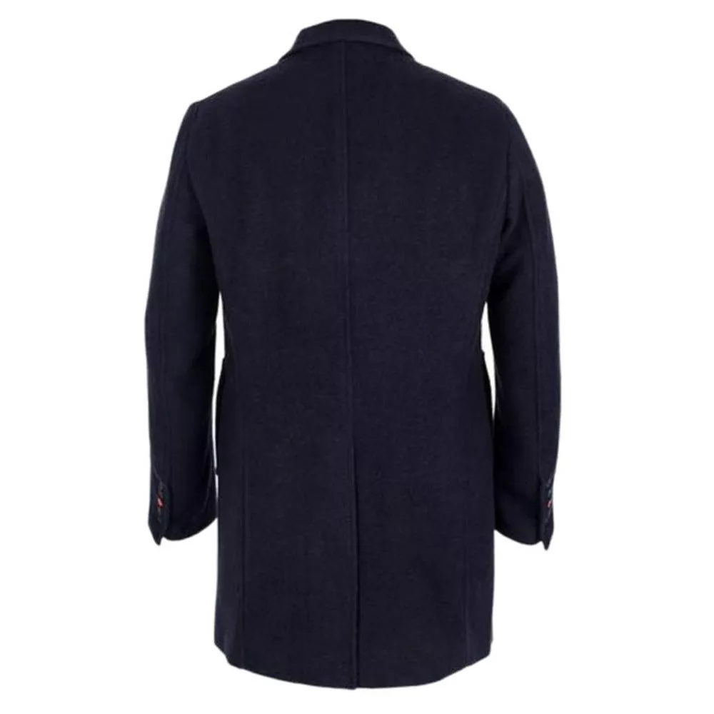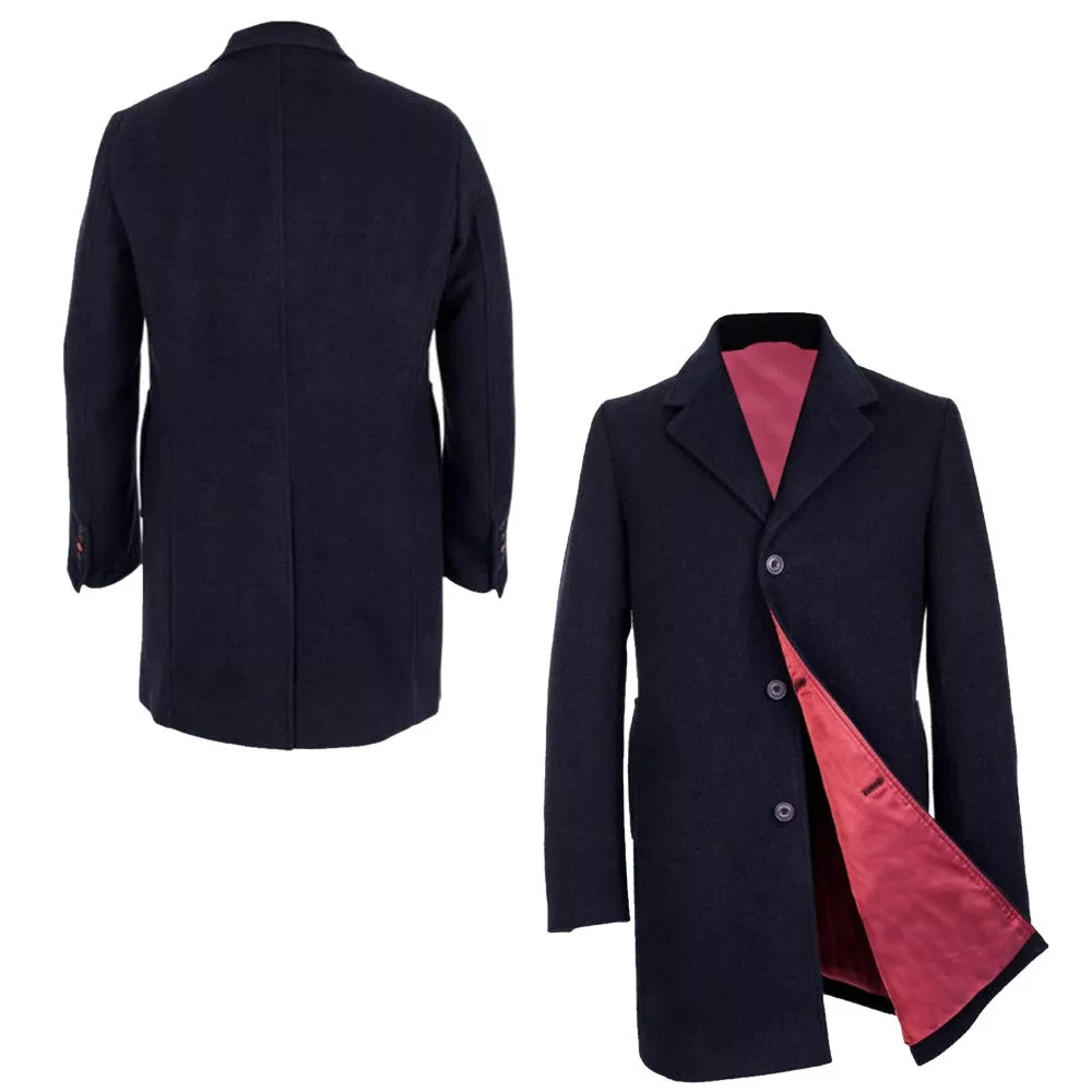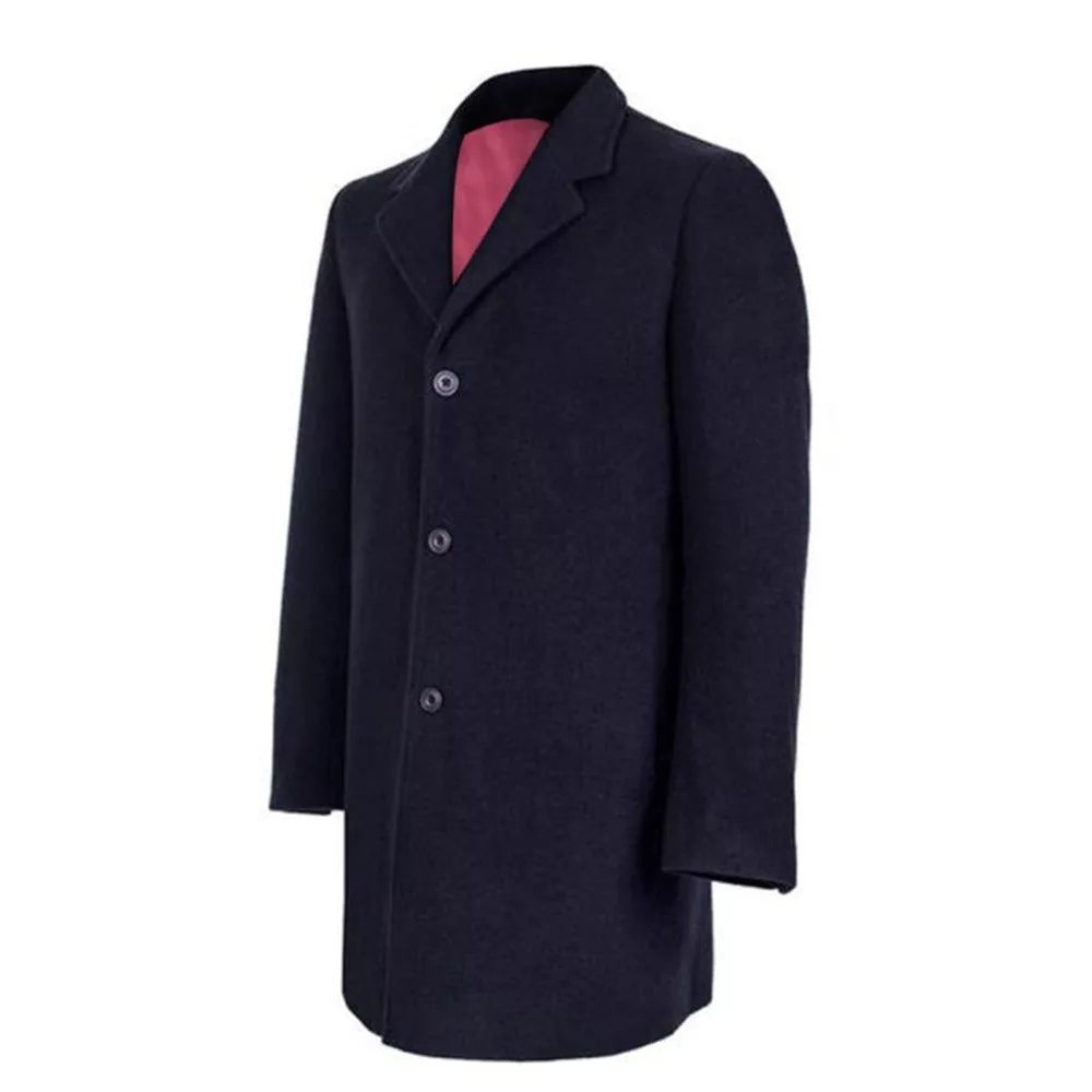 Men’s Single Breasted Notch Lapel Wool Navy Blue Coat