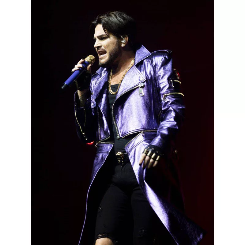 Adam Lambert Stylish Shiny Purple Trench Coat
