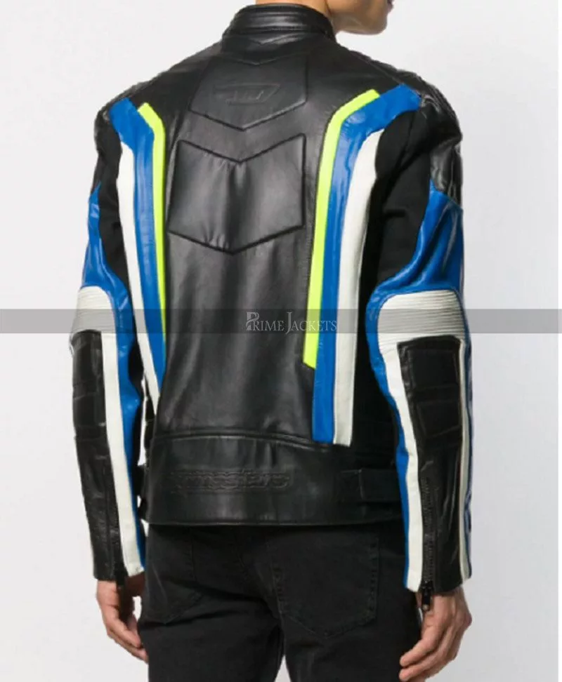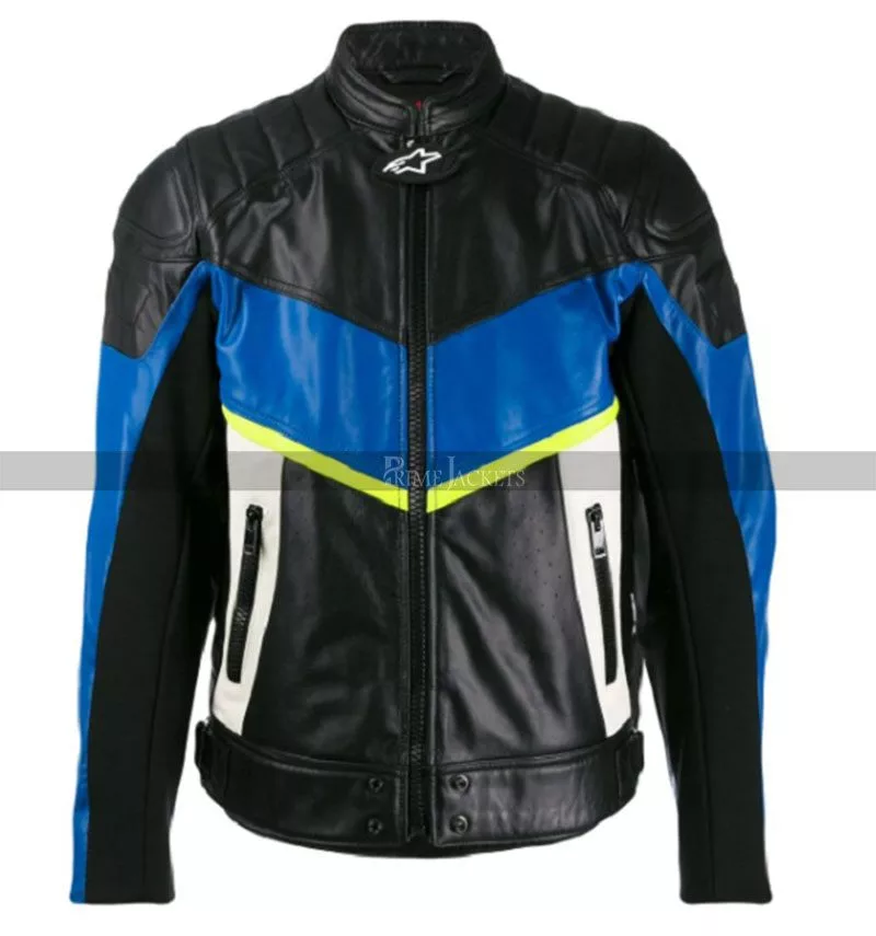 - It has been provided with the base in black color and the blue and yellow shades may be seen to enhance the beauty of the Alpinestars Motorcycle Jacket with a zipper closure given at the front side and pockets as well.