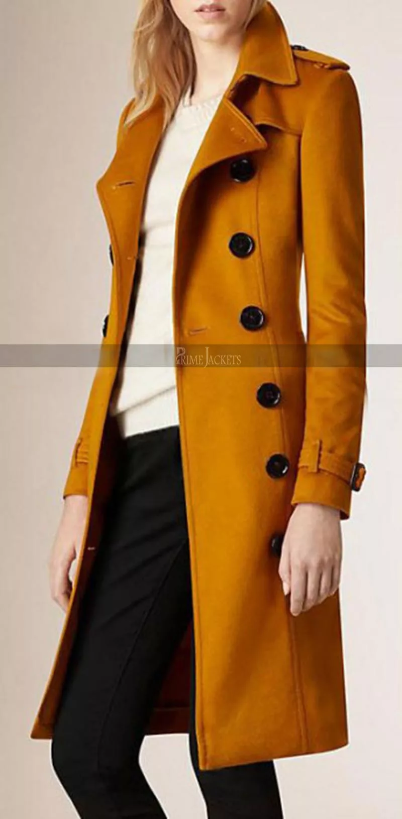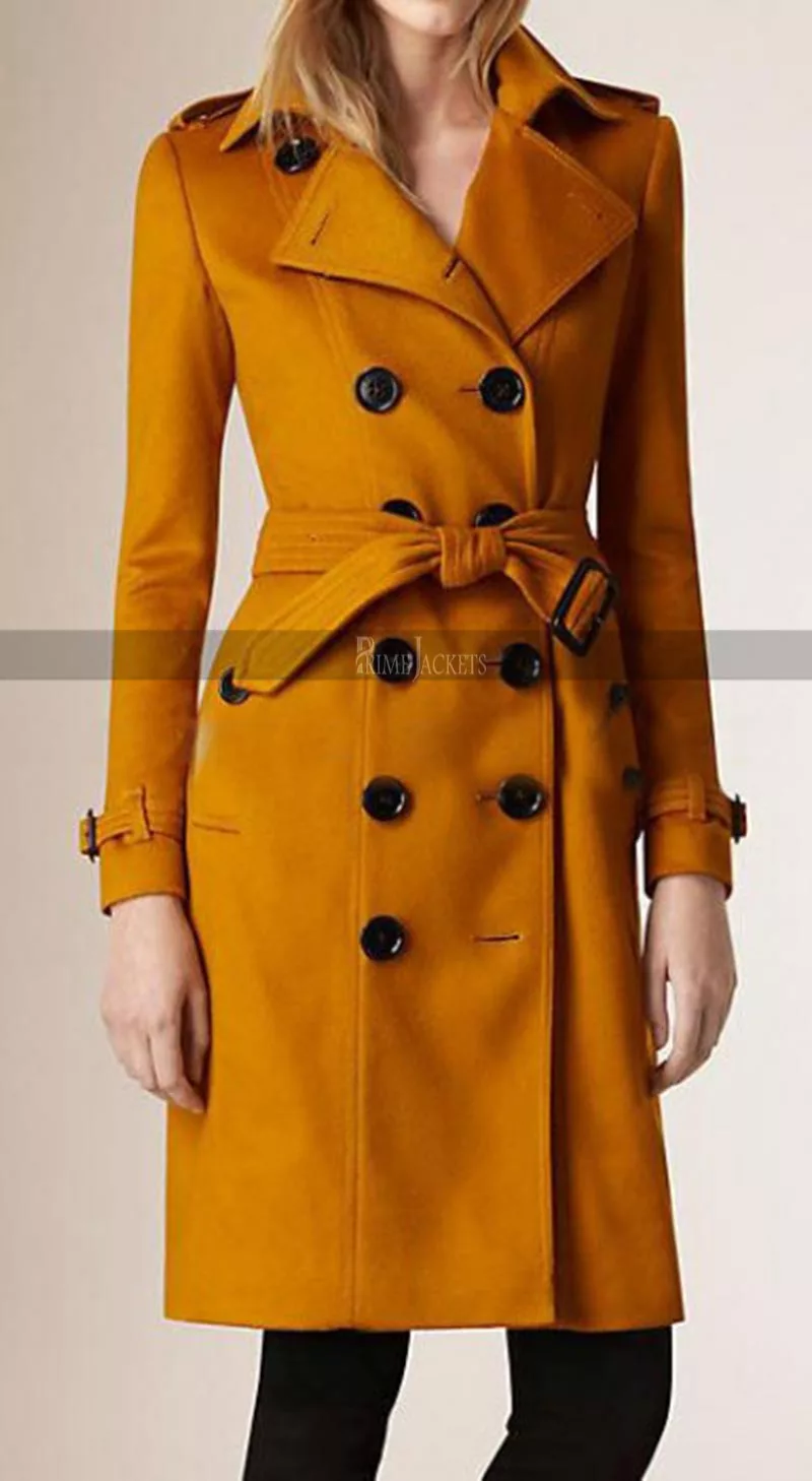 Women Double Breasted Anne Hathawa Mustard Trench Coat