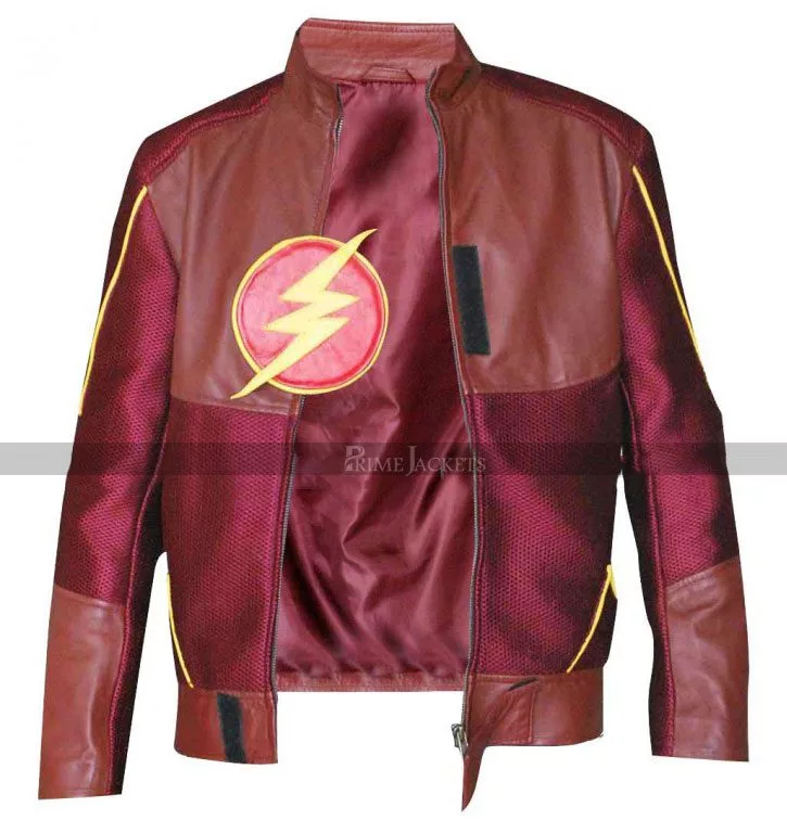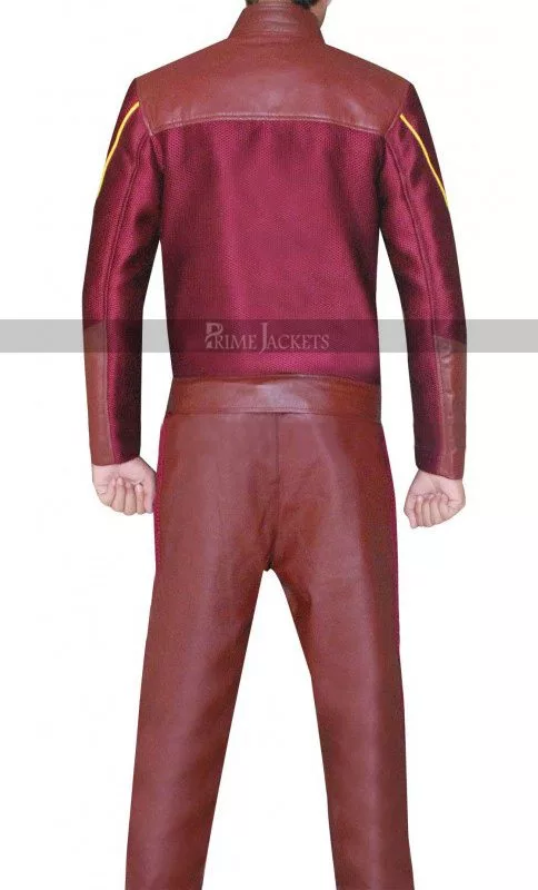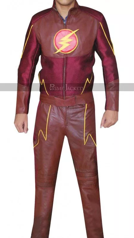 Embrace a stunning overall look with the Scarlet Speedster’s duds from Arrow Season 2. The Flash star Grant Gustin hit back at fans with an electrifying appearance in this red leather costume. Genuinely crafted with the best grade leather material; it has been produced for an enjoyable persona in a dazzling red shade. The costume comprises of a lovely red jacket and matching pants. The inner has been made truly comfy and soft with a viscose liner. The jacket carries a mandarin collar and a following zippered closure. There is a flash logo on chest that enhances its signature appeal. The pants feature front zippered fly and a straight silhouette with an alluring piping pattern at front.