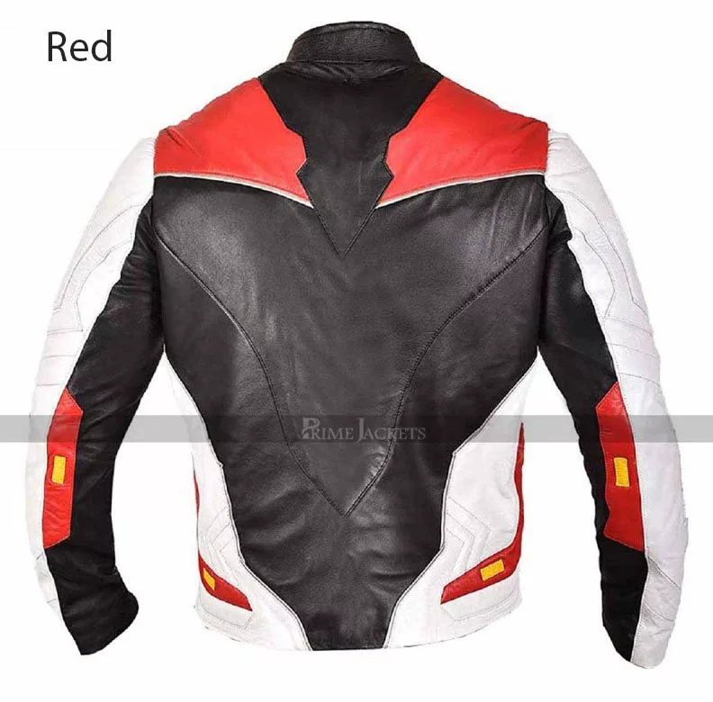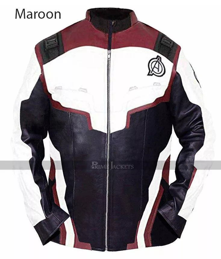Gear up modishly to travel back in time! This tremendous Avengers Endgame Jacket will lead you stylishly everywhere. Using the top quality leather material in dazzling color combinations of red and white and maroon and white; it is a must have garb for both men and women. An inner viscose lining is attached to keep the wearer comfy and relaxed. It accommodates an erect collar, a front zippered closure, padded designed shoulders, sleeves andchest. An Avengers logo is being placed at chest and upper sleeve to give an appealing signature look. The multi-textured front look provides a dazzling visibility.