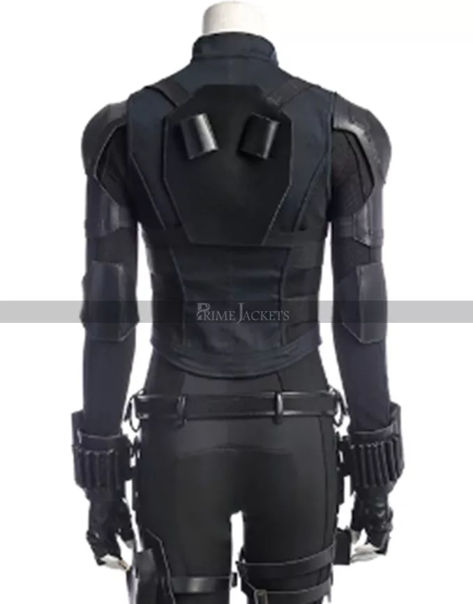 The gorgeous American diva Scarlett Johansson is highly admired by fans due to her talent, natural beauty and breathtaking style. We are presenting one of the most appealing Infinity War Scarlett Johansson vest from her upcoming movie Avengers Infinity war. She looks really impressive in this black leather vest portraying as Black Widow. It has been replicated with the top quality leather with an inner viscose lining. It has an erect collar and front zippered closure. You will be more than happy with this screen accurate attire. So girls pump up your dressing level with this amazing vest in parties, casual settings and outdoor gatherings.