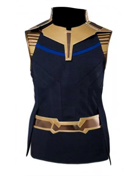 Take on a bold and sturdy presence in a dominating attire from Avengers Infinity war movie. It is meticulously designed to meet your fashion needs. The incredible Thanos vest is made with top grade PU leather or cotton material. It is lined internally with a comfy viscose lining. An intrepid erect collar enhances the grace many folds and unique golden padded designing on shoulders imparts a flawless character to be admired. Grab the marvelous outfit now and create a remarkable personality to impress everyone around you.