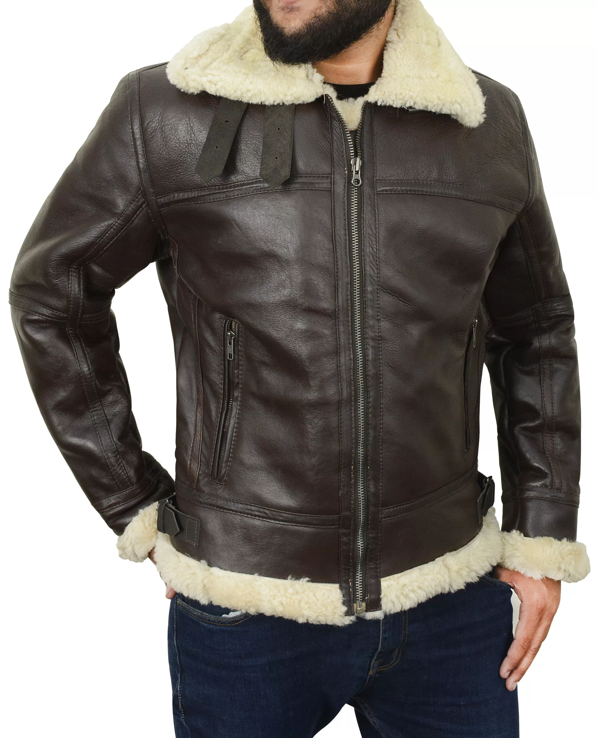 B3 RAF Aviator Pilot Flight WWII Shearling Bomber Jacket