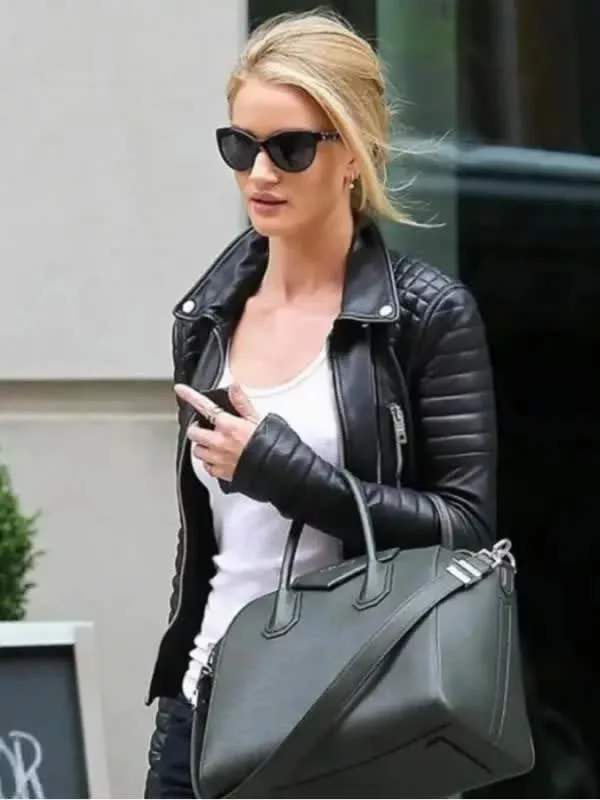 Black Leather Quilted Biker Rosie Huntington Whiteley Jacket