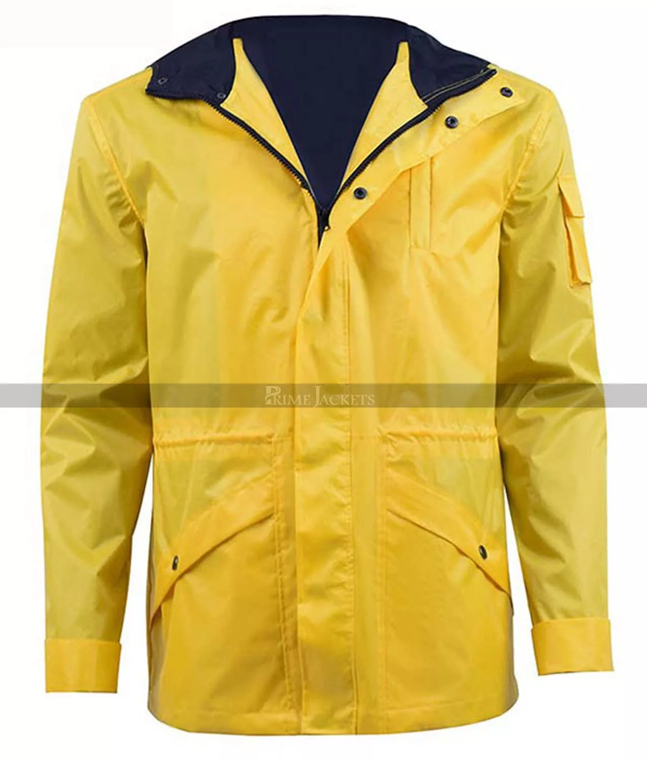 Its yellow in color and can be matched with any pair of pants. The front has double press style with button closure. The inner of the Dark Season 3 Jacket is black, and there is a hood as well. There are two side pockets.