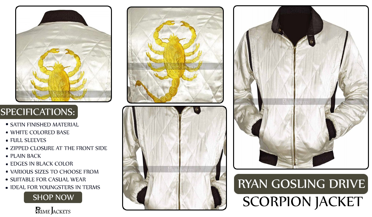 Ryan Gosling is a Canadian actor who is known for his acting skills and mesmerizing personality. The 41 years old actor is the father of two children, and he looks very young and smart. He is an MTV award-winning actor known for his performance in movies like La La Land and Drive. Drive is an action-adventure movie that was released in 2011. Gosling performed the title role of the driver in this film. He was a stuntman who struggled to save his love from gangster. The story was very engaging, and viewers loved his performance. It’s not only the acting of Ryan; people love his outfits too. The famous Scorpion Jacket was the fashion trend in those days. The jacket is very popular even now, and everyone recognizes it as a trendy outfit. Good fashion never gets old, and that is true for this Drive Jacket.We have this outfit in our collection, and you can grab your size any time. If your size is not available in our size chart, do not hesitate to place a customized order.