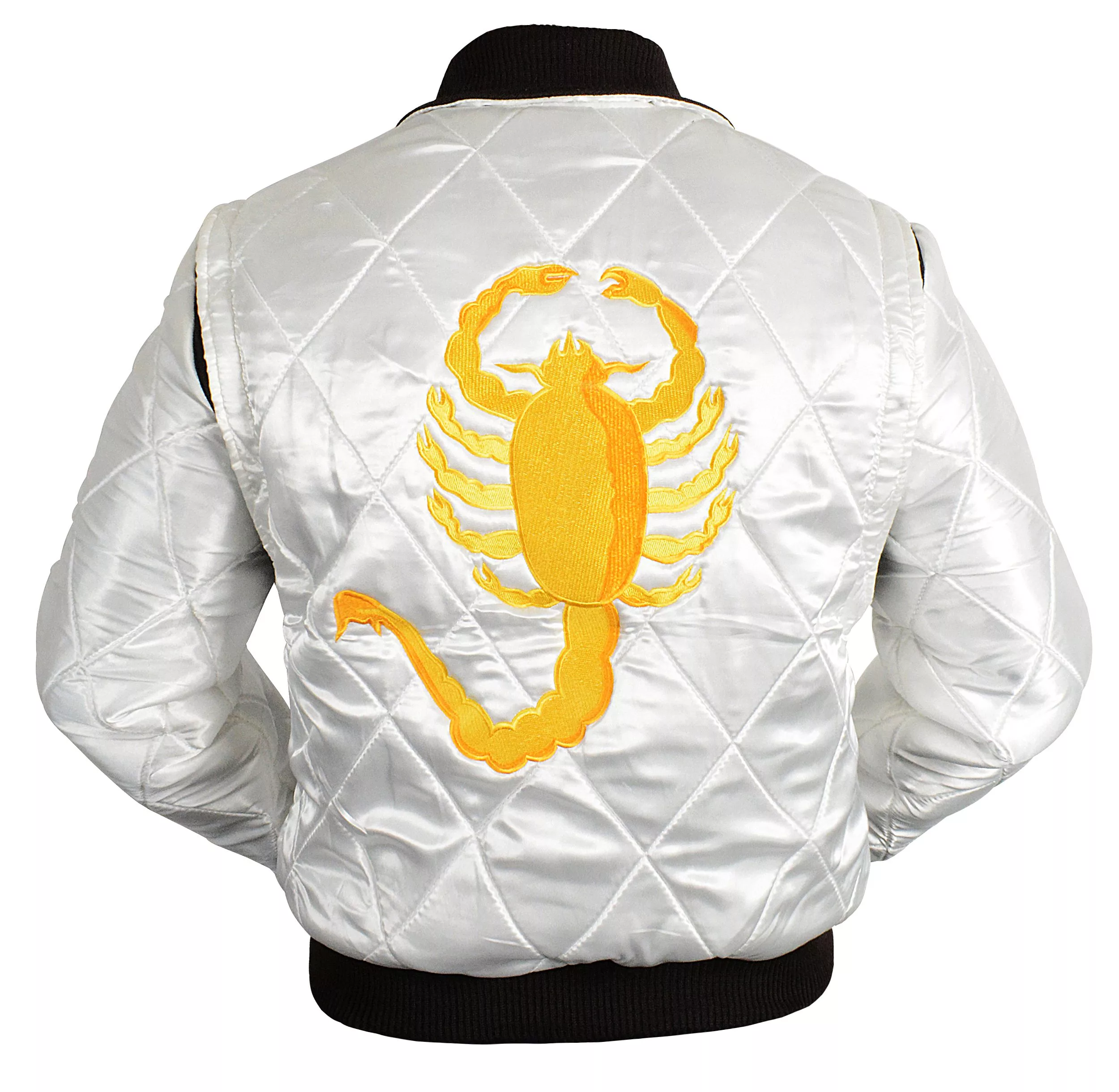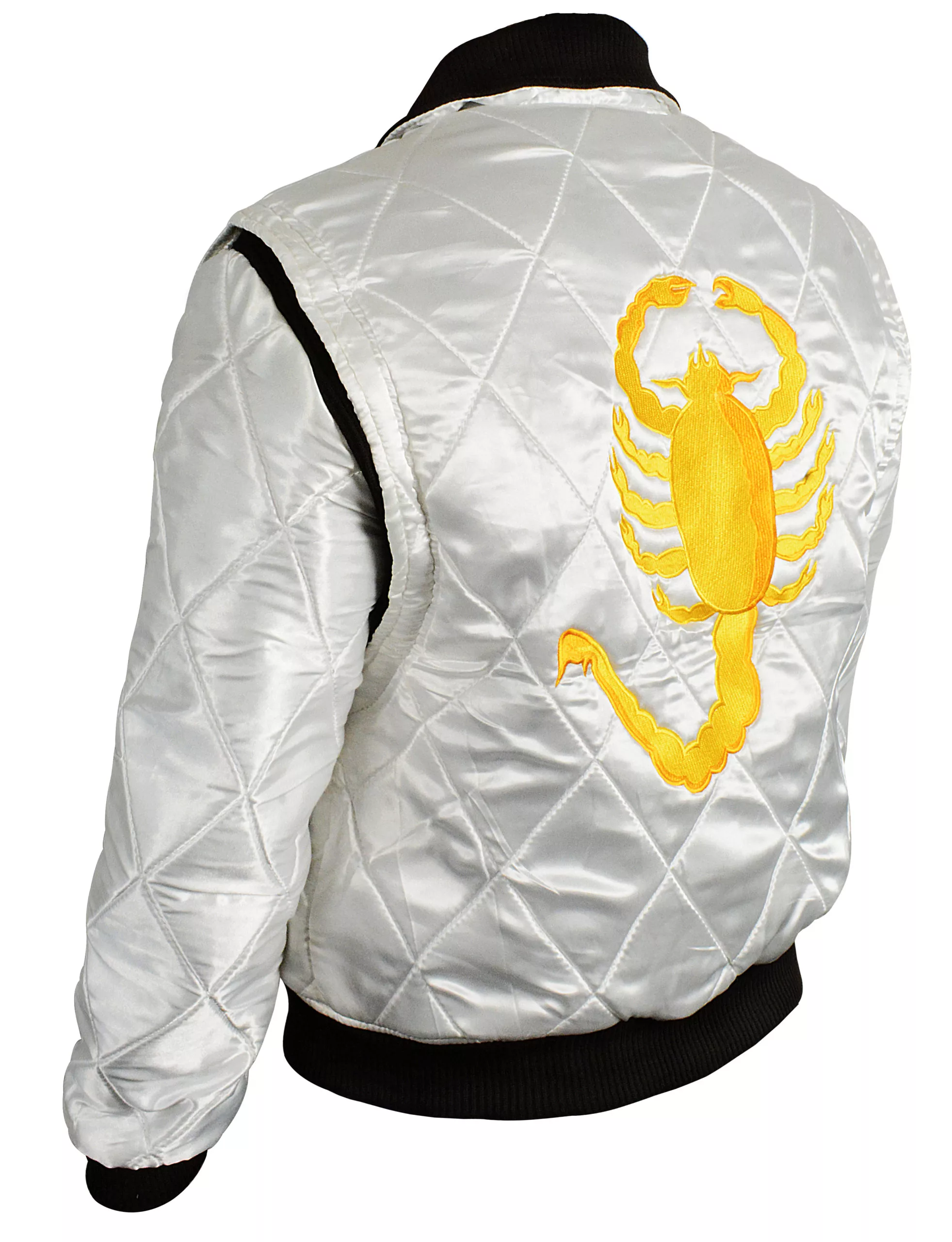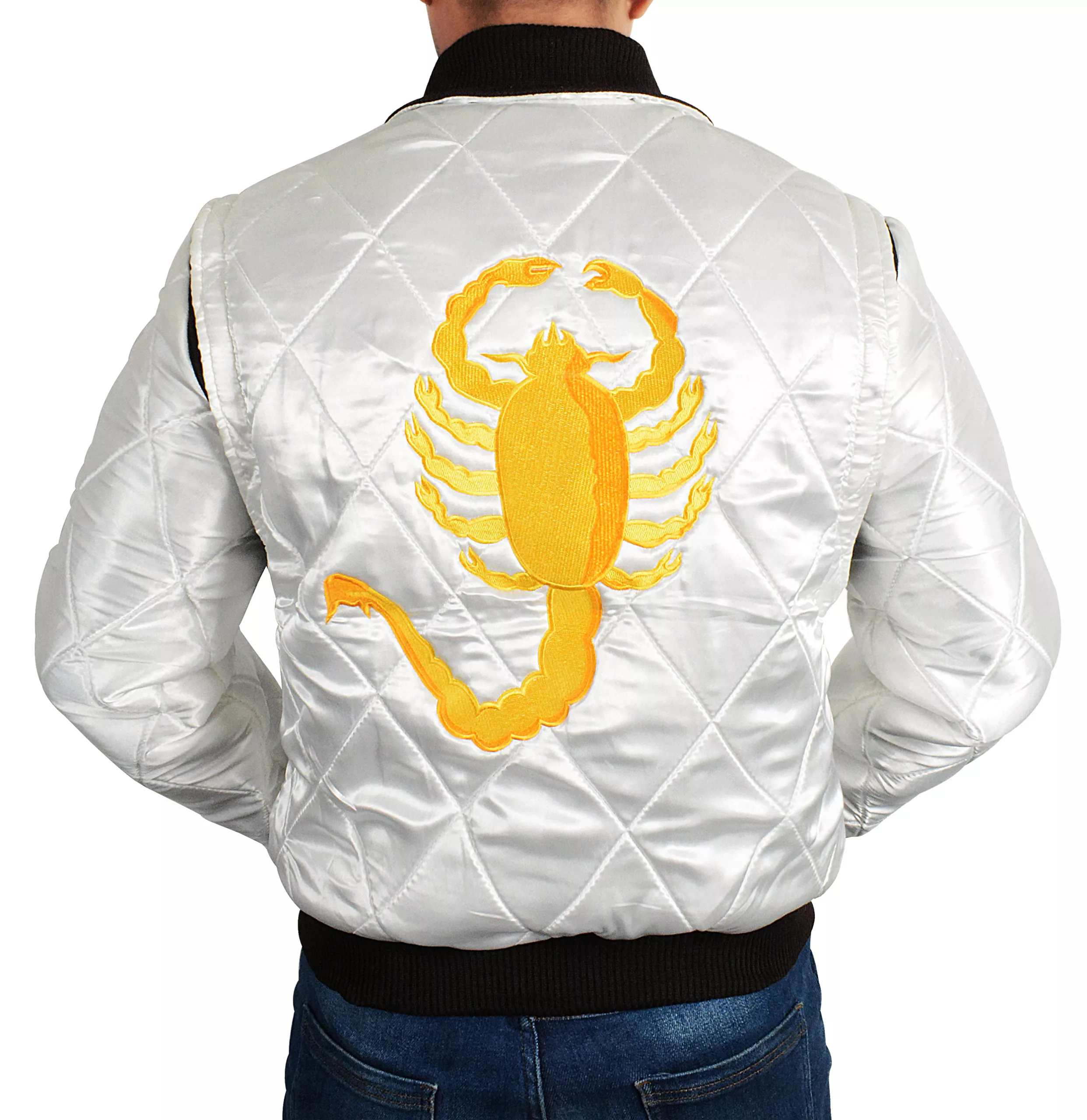 Mens Drive Ryan Gosling White Satin Scorpion Jacket