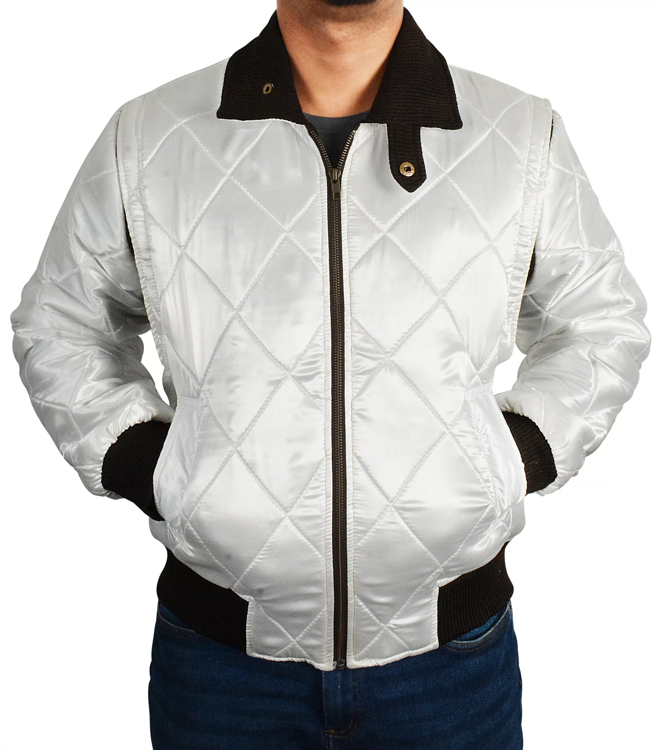 We have manufactured this Scorpion Drive Jacket from the best quality Satin. The inner lining is also very durable and soft for the skin. The white color makes it a classic choice for every age. Match it with white trousers or a black one. It looks perfect with both. It has a front zip closure, which makes it very easy to wear. The small stand-up color is black, very prominent with the white color of the outfit. The full sleeves are white with black rib knitted cuffs. Softs cuffs are very comfortable to wear. The waistline is also rib knitted and black. There are two side pockets, which are hard to notice. A black patch on both sides makes it a stylish choice. However, the highlight of this outerwear is the large scorpion at the back. A large yellow scorpion at the back is very prominent and gives it a unique name. This casual jacket is suitable for friends’ gatherings too. You can use it for any outdoor activity and your bike riding adventures as well. Use it as a costume for any costume party, and you will look stylish and decent. Having this product in your closet is not a bad decision; your friends will envy you!