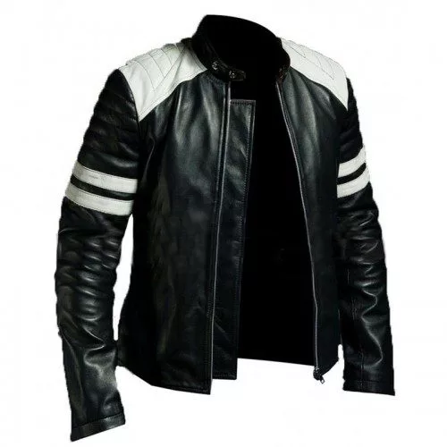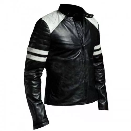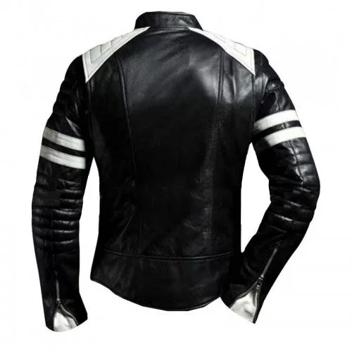 Brad Pitt Hybrid Mayhem Motorcycle White Stripes Black Leather Jacket