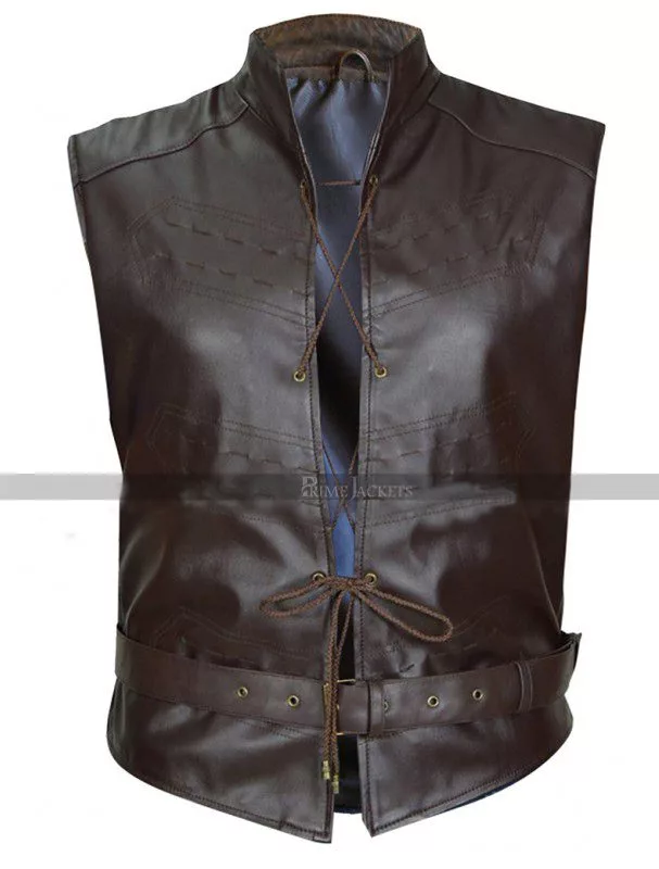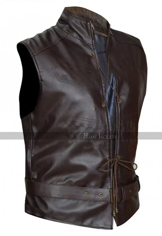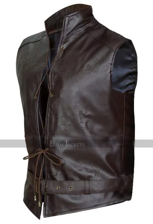 Show off a dazzling attitude with this wonderful leather vest from the award-winning HBO TV series Game of Thrones. The handsome Welsh actor Iwan Rheon portrayed his part as Ramsey Bolton brilliantly and managed to steal the eye balls of the viewers with his stunning appearance. This Ramsay Bolton vest is one of his noticeable attires and has been manufactured with the best quality leather material. The inner has been made extremely comfy with a top notch viscose lining. The vest features an erect collar followed by a unique closure with drawstring. There is a belted closure provided at waist that imparts a true to size fit to the wearer.
