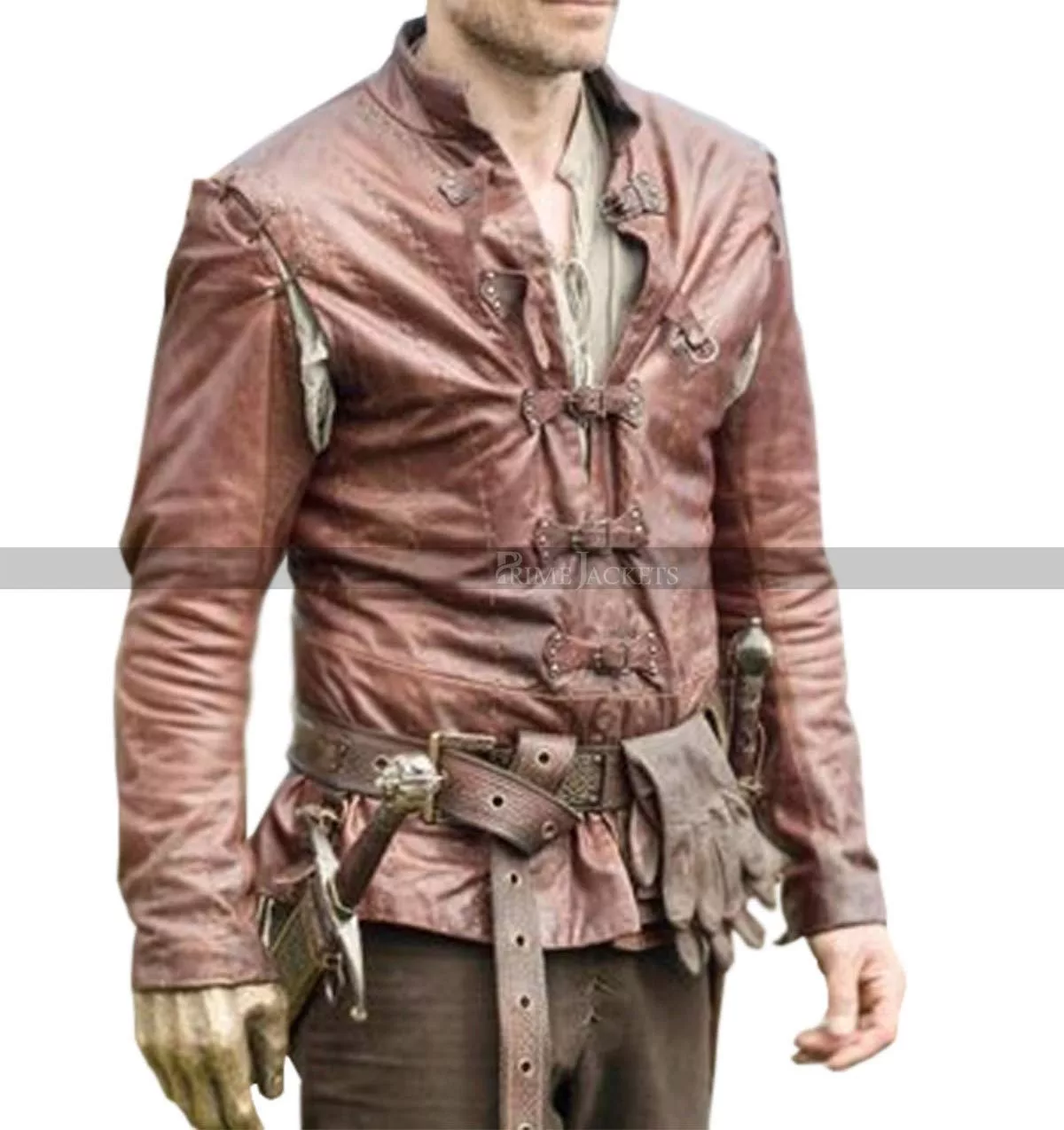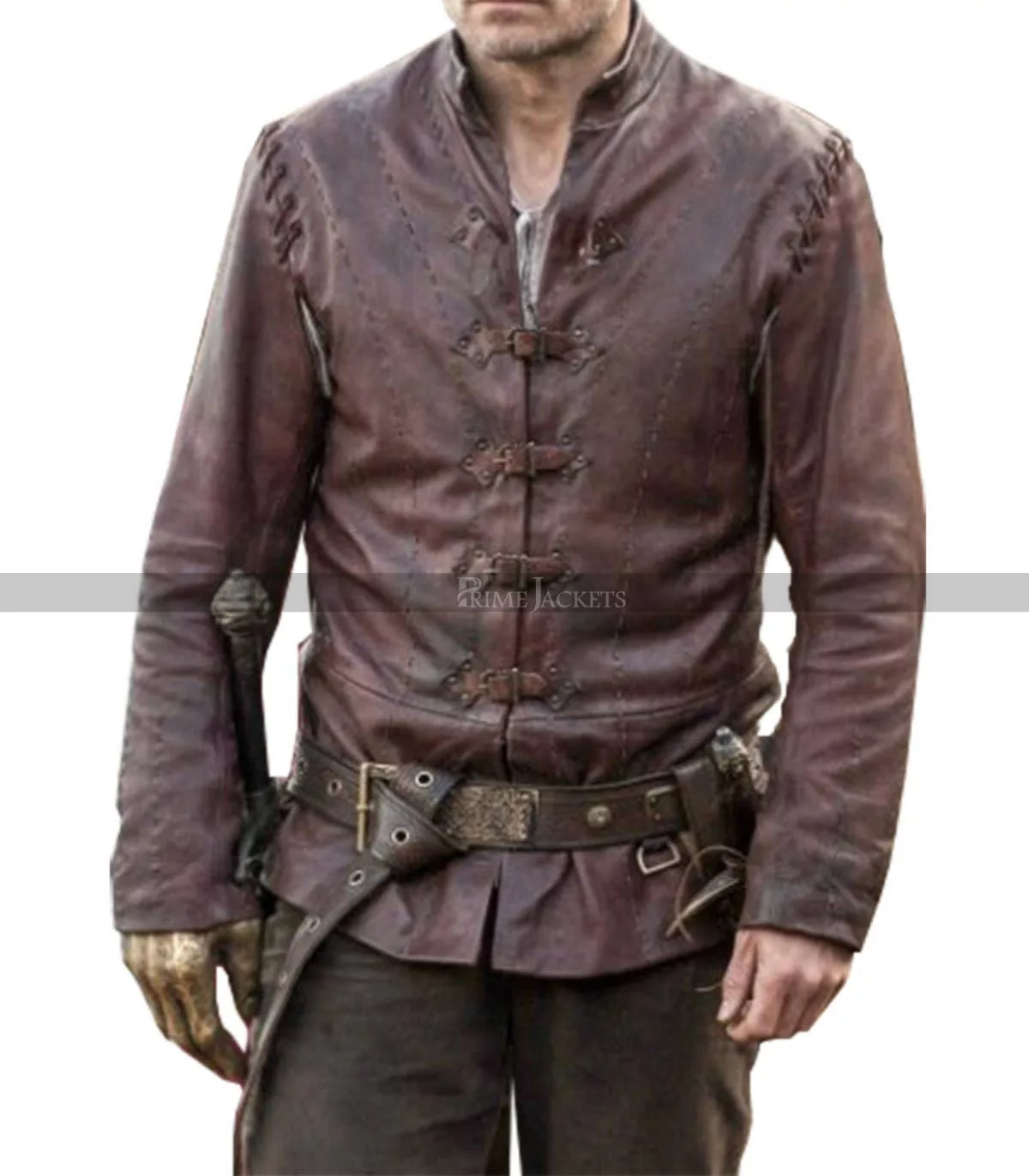 Welcome something truly revealing and fascinating into your style wardrobe. This classic leather piece is an inspirational replication of the jacket worn by the handsome Nikolaj Coster-Waldau as Jaime Lannister in the highly rated TV series Game Of Thrones. Extremely high quality of leather is used to createa robust looking jacket. It carries a premium grade inner viscose lining for a pleasant wearing. It features a knot style front buckle closure to give a classic appeal. The collar is kept simple and smart with a standup silhouette. With a waist belt fastening; the garb gets an alluring, medieval outlook.