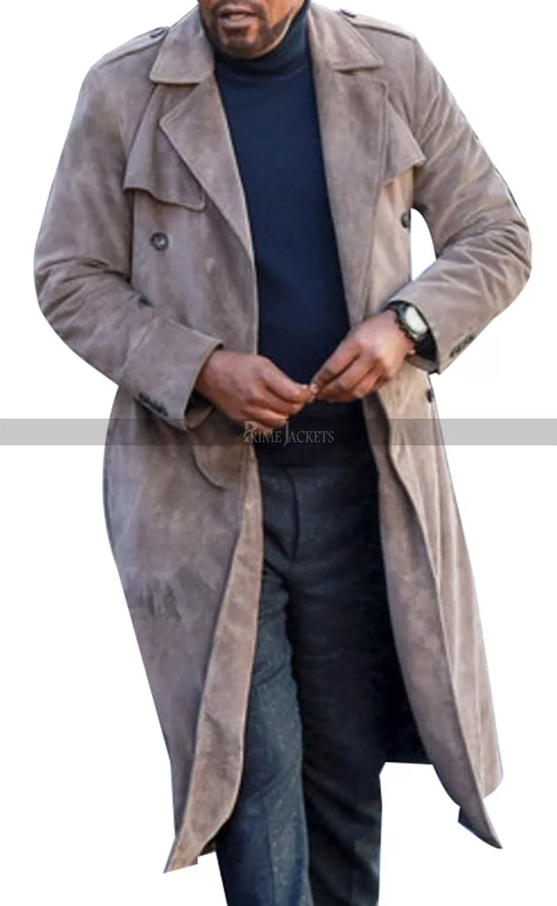 Shaft 2019 Movie Shaft Grey Suede Leather Coat
