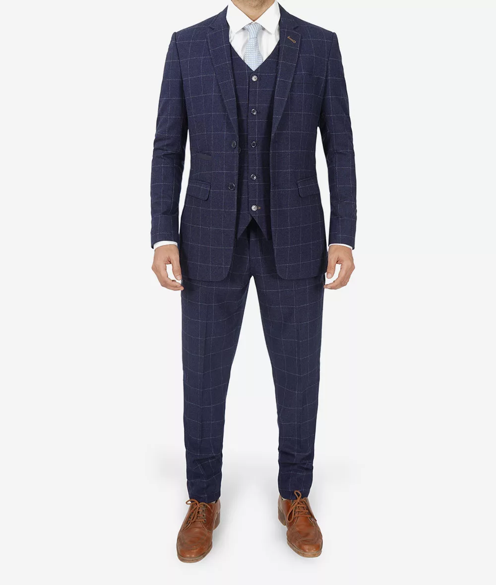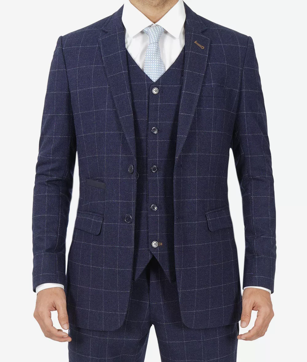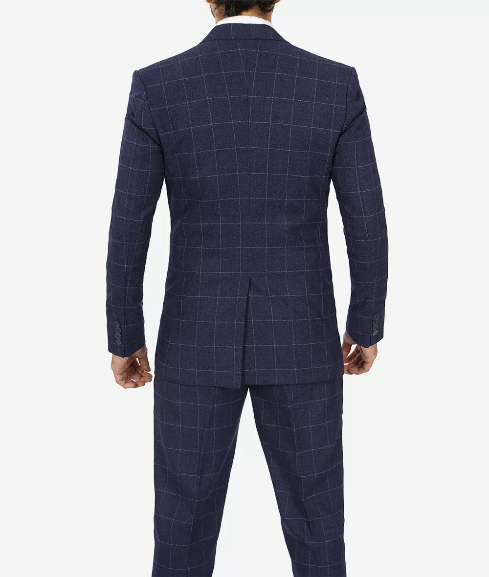 Mens Navy Blue Check Suit