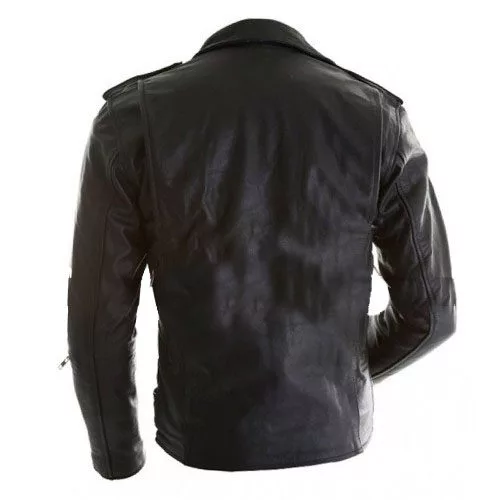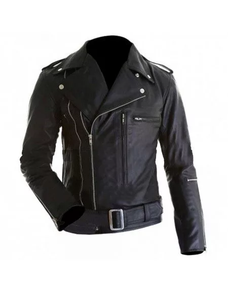 The sleek and well-groomed black leather jacket is an inspirational replication of the outfit worn by Arnold Schwarzenegger in the movie Terminator 2. The main attraction of this Arnold Schwarzenegger jacket lies in its glossiness. It has been designed in a sturdy pattern using highest quality leather. The incorporation of zippered design, pockets and bulky waistline belt; contribute to produce a rough and tough wearable. For a pure terminator look; black colored leather pants or khaki would work as the best fusion.