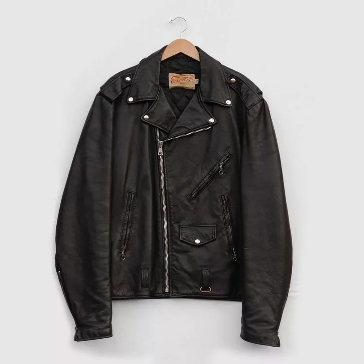 Also, there are full sleeves with open hem cuffs and a zipper closure. Two zipper side pockets and one chest pocket is also present at the front. This Vintage Excelled Motorcycle Leather Jacket is in black color that goes perfect with other modern outfits too.