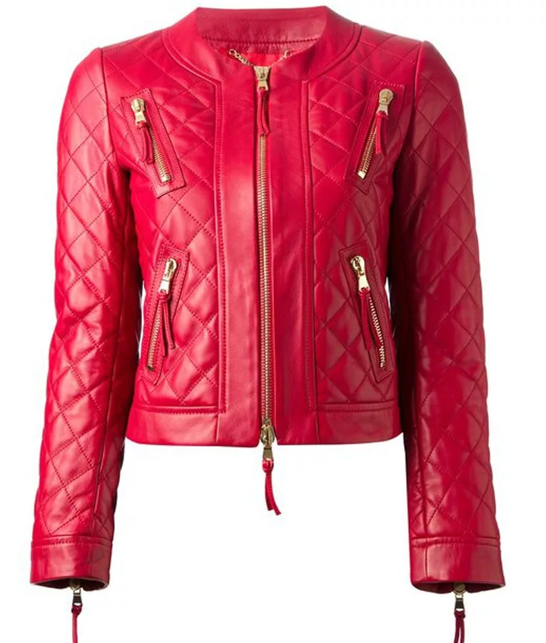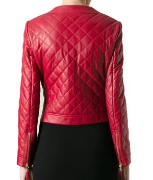 Women’s Red Leather Quilted Jacket